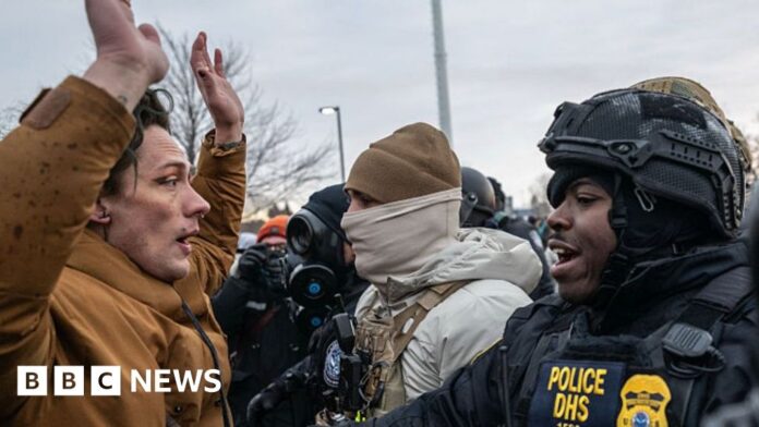 Recent protests in the city were sparked by widespread action by ICE in the city, and follow Good’s death on 7 January.