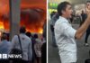BBC journalists saw flames and smoke in the pavilion area before they were rushed outside. It is not yet known what caused the blaze.