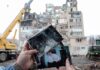 Heavy machinery and workers cleared debris and shattered glass on Monday in Beirut’s Haret Hreik suburb, where an Israeli strike damaged several buildings and vehicles.