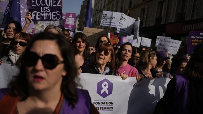 Thousands of demonstrators gather in Paris for International Women’s Day. Among them mass rape victim Gisèle Pelicot and her daughter Caroline Darian, leading the march to defend women’s rights, denounce sexual violence, and protest the rise of conservatism.