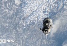 An illustration of the Falcon Eye 1 satellite in orbit.