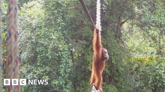 Conservation groups the Sumatran Orangutan Society (SOS) and Tangguh Hutan Khatulistiwa, with the help of the government, built a canopy bridge in the hope the orangutan communities would use it to pass between the two forest sides.