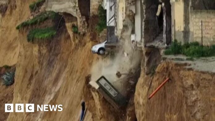 A 2.5 mile (4km) section of cliff has collapsed on the Italian island of Sicily, after it was pummelled by wind and rain brought by Storm Harry last week.
