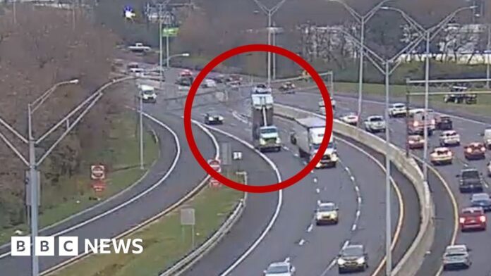 The vehicle was travelling along Ohio’s I-70, with the dramatic collision occurring in Columbus last Thursday.